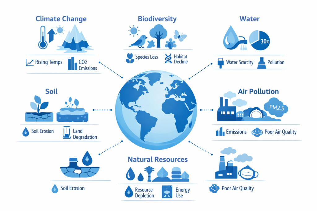 Broader Context Factors: Clause 4.1 now explicitly requires assessing a wider range of environmental conditions. In addition to climate change, organizations must consider biodiversity/ecosystem health, pollution levels (air, water, soil), natural resource availability, etc. in their context analysis. This embeds systemic environmental risk and dependency into the EMS rather than a narrow, site-based view.