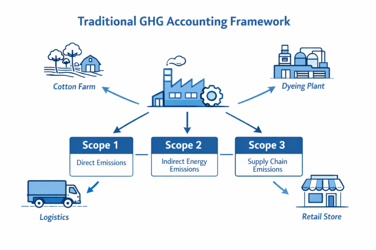 As climate regulations tighten and fashion brands commit to ambitious net-zero targets, measuring greenhouse gas (GHG) emissions has become a strategic necessity rather than a voluntary sustainability effort. Most organizations begin this journey using established frameworks such as the GHG Protocol Corporate Standard or ISO 14064, which provide a structured methodology for calculating emissions across Scope 1, Scope 2, and Scope 3.